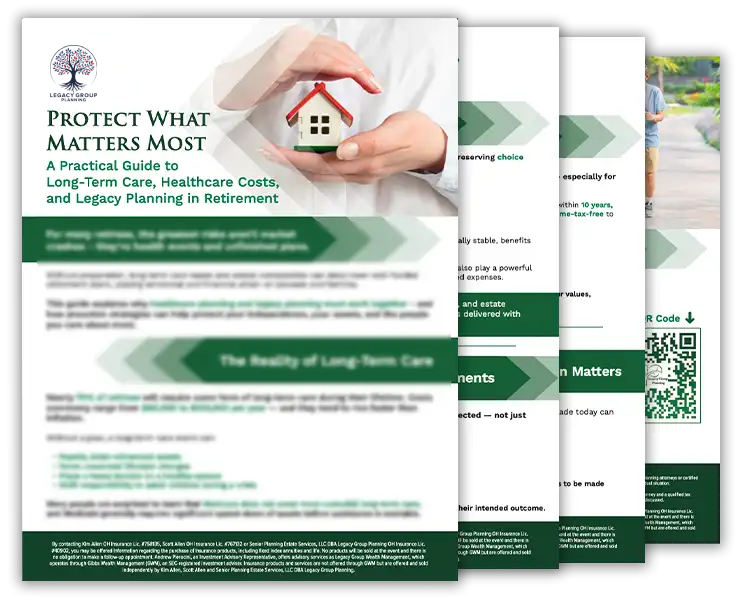 By contacting Kim Allen, OH Insurance License # 758135 / Scott Allen, OH Insurance License #767132 / Senior Planning Estate Services, LLC DBA Legacy Group Planning, OH Insurance License #40902, you may be offered information regarding the purchase of insurance products, including fixed index annuities and life.